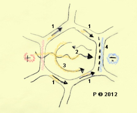1) Johtumisena solujen seinien kautta lämpimästä kylmempään.