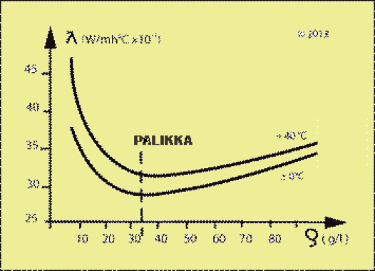 Sininen käyrä osoittaa PALIKKA® eristeen vielä paremman lambda arvon - 20 asteessa.